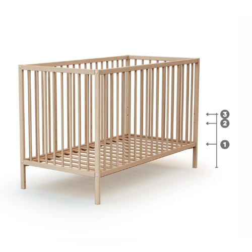 It has a slatted base that improves ventilation and allows quick drying of the bed and mattress (not included). Thanks to its 3 positions, the bed base adapts to your baby’s growth.