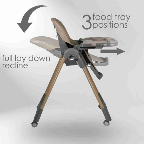- Double Detachable food tray, with 3 position adjustment.