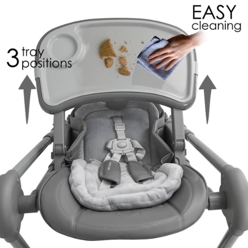 Designed for children from 6+ months up to 15kg as a highchair and from 0+ up to 9kg as a swing, Nuovo offers comfort, safety and functionality.