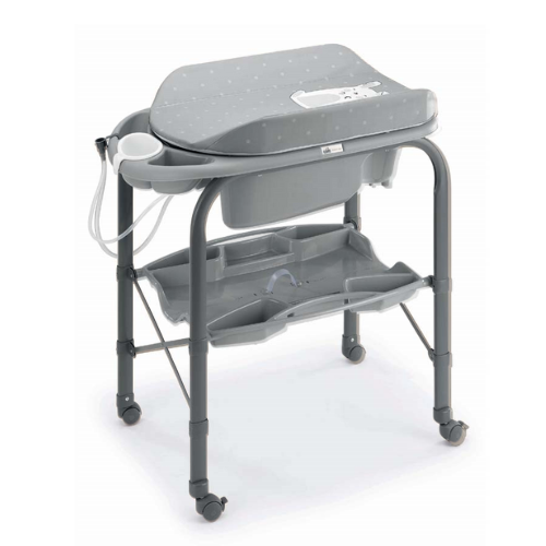 - Soft changing mat with tip-up prevention system, it includes the Baby Bagno bath with 2 anatomically-shaped, non-slip seats (one seat with incline for babies from 0 to 6 months and one seat with armrests) which pulls out to enable mum to bath baby and change him easily