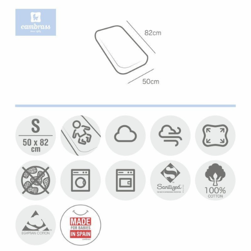 The Cambrass mini crib fitted sheet works as a practical fitted sheet by adapting to the mattress on the sides with its elastic band. Its manufacture with 100% Egyptian cotton and the Sanitized treatment guarantees its hygiene as it offers long-lasting antimicrobial protection that prevents the development of bacteria and fungi as well as bad odors.