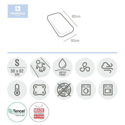 The fitted sheet made with TENCEL” fibers (for mini crib) from Cambrass works as a practical fitted sheet by adapting to the mattress on the sides with its elastic rubber, it is waterproof and breathable. 100% guarantees comfort and well-being during rest due to its waterproofness and breathability, it also offers long-lasting antimicrobial protection, prevents the appearance of bad odors, is hypoallergenic and thermoregulatory. Botanical and ecological fibers that provide absorption, softness and freshness.