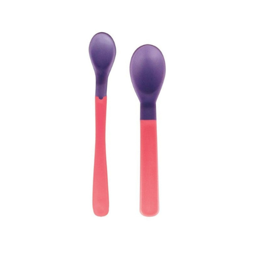 A set of two spoons that have a heat sensor. The spoon is mainly used to feed children in the period before and during the period of teething. Spoons help control the temperature of the food. They are made of a material that changes color at a higher temperature (around 40°C) – becomes lighter (the lighter the spoon, the higher the temperature). Dip the spoon into the served dish for about 1 minute. If the color of the spoon changes, wait for the food to cool down. If the spoon does not change color after dipping again, the food is ready to serve. The information obtained in this way about the temperature of the food is only indicative. The rounded shapes of the spoons are gentle on children’s sensitive gums. 2 pcs in the package.