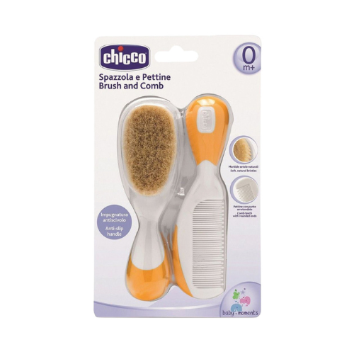 Includes a brush with natural soft nylon bristles and a comb with rounded tips. The brush and the comb have large handles for a safer grip. Perfect for gently combing your baby’s hair.