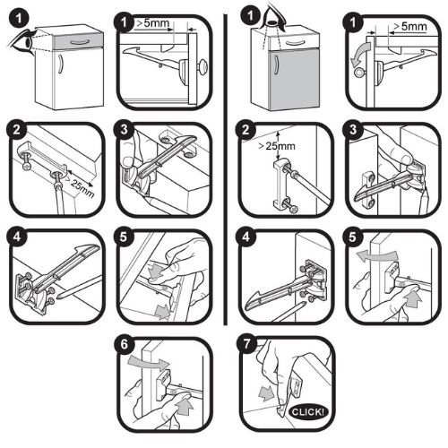 - Easily fitted to help prevent children from opening drawers or cupboards