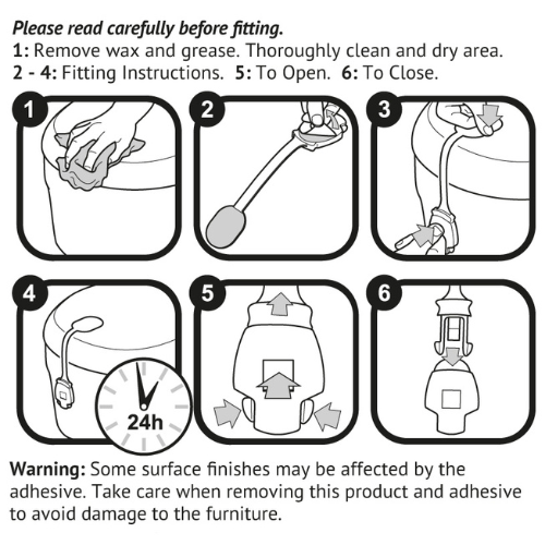 The last thing any parent wants is for their child to use the toilet as a toy or worse still a storage place for teddy bears or toilet rolls. Soggy toys, dirty hands and a messy bathroom are just some of the problems caused by youngsters seeing the toilet as a game rather than a necessity.The Toilet Lock is easily fitted using the adhesive pads that are supplied with the product and is designed to keep the lid firmly closed. It can only be released by an adult, meaning parents can make sure children only use the toilet when they need to.