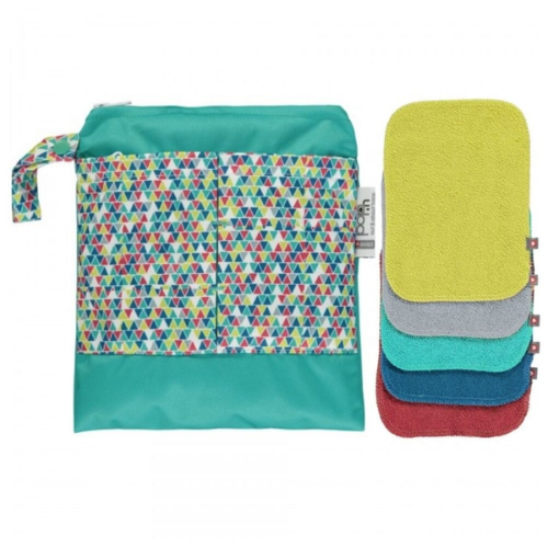 Make the switch to reusable with our Pop-in’s bamboo baby wipes! Not only are these super soft, gentle and efficient, but they can also save you money and reduce your family’s footprint. Replace up to 15 000 individual disposable wipes with just 20-30 of them between birth and potty. These versatile super absorbent wipes are great for a multitude of purposes – from wiping mucky hands and faces to make up removal and more. Plus, our bamboo is naturally antibacterial and Oektox and FSC 100% certified. Each pack contains 10 perfectly sized multi-coloured wipes; perfect for those who want a more eco-friendly solution to single-use!