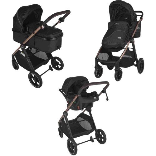 With a modern design and intelligent construction, the new Hapi Soley 3 in 1 is the perfect companion for parents who want a convertible stroller, practical and elegant. The complete system includes a convertible carrycot, sports unit, and I-Size car seat, offering a versatile solution from birth to the child’s first steps.