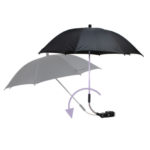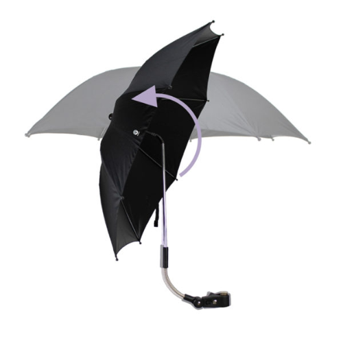 DOOKY sun shade for the stroller to protect your child against the bright rays of the sun, Dooky has developed a unique sunshade to be attached on the stroller or buggy. This sunshade protects your child against sunlight, is flexible in all directions and very practical to use! Benefits of the Dooky sunshade stroller When you go out in summer with your little one, it is important to protect their delicate skin. In addition to using sunscreen, it is wise to place a sunshade on the stroller or buggy. But one that protects against the sun’s harmful rays. The Dooky sunshade has a canopy with UPF 50+ protection and is nicely large with its 76 cm diameter. Very safe! The Dooky sunshade can be rotated in all directions Using the Dooky sunshade ensures that fresh air can always enter the carry cot and reach your child. In whichever direction you drive and however the sun shines: the arm of the Dooky sunshade can be rotated 180 degrees. Moreover, the ‘flex technology’ allows you to bend the arm of the sunshade at both the top and the bottom. This way, you create an optimal shaded area in the carrycot of the pram or in the toddler seat of the buggy. How to attach the Dooky sunshade to the stroller? The Dooky sunshade is smart and universal because it fits on the handle of all brands of strollers and buggies. On round and square pipes. The sunshade is easily attached to the push bar with the ‘easyfix system’. Is there a breeze? No problem, because the arm and the ribs of the sunshade are made of high quality aluminium, so extra strong and windproof. Clean and store quickly and easily The sunshade is made of water-repellent 100% polyester. If the sunshade gets dirty, you can easily clean the fabric with soapy water and a wet cloth. If you do not use the Dooky sunshade, you can fold it up and store it in the supplied cover. The Dooky sunshade is available in black and grey melange.