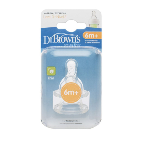 The Dr Browns Narrow Neck teats are made of super-soft, high-grade silicone, suitable for the Dr Browns narrow neck bottles.