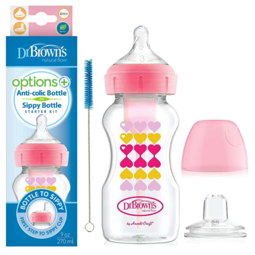 - Includes an 9 oz./270 ml Options+ Wide-Neck bottle, level 3 nipple and a sippy spout