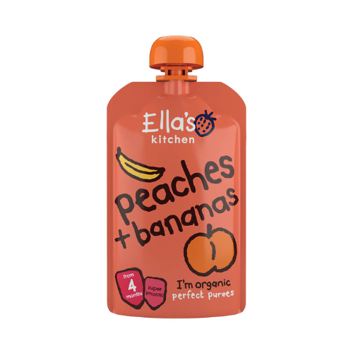 Peaches & Bananas smoothie is made from 100% organic pureed peaches and bananas with a dash of lemon juice.