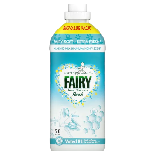 Discover the power of gentle care with Fairy Non Bio Fabric Softener It is no surprise that Fairy Non Bio was voted no.1 laundry brand for sensitive skin. Fairy Non Bio leaves clothes brilliantly clean and feeling gentle next to precious skin. It is versatile, easy to use. Just pop the right amount in a dosing cap and add that direct to the heart of your wash, so all those magical Fairy ingredients can get to work straight away. With Fairy Fabric Conditioner for the softest combination for your baby’s skin.