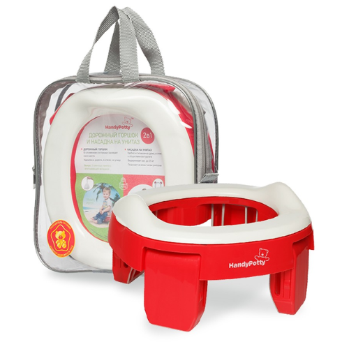 - HandyPotty portable potty can be used as three different full-fledged products of children’s hygiene:1.  A standard potty – this is a standard position in which the legs provide maximum comfort for your little one by creating support and lifting the potty to the necessary level. A reusable liner which is used in this mode is easy to take off and clean.
