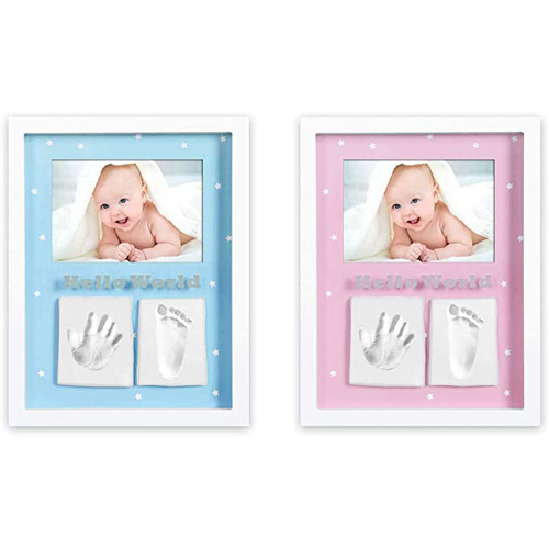 Have a memory for a lifetime with this photo frame with footprints for newborns. Immortalize the imprint of his little hand and foot, accompanied by two images, to always remember what he was like when he was born. A precious present that mums and dads will appreciate.