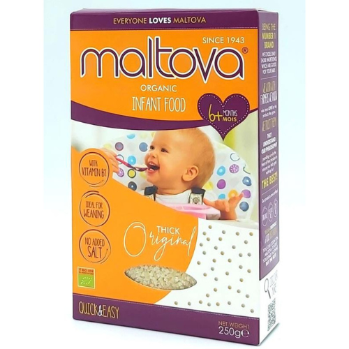 - Maltova is organic and fortified with vitamin B1, their products do not have added salts, sugars, colours or preservatives