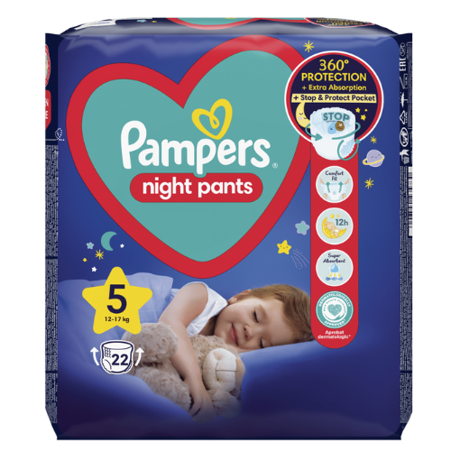 Pampers Night Pants offer better protection at night for a good night’s sleep, thanks to the reinforced core for up to 12 hours of protection against leaks.