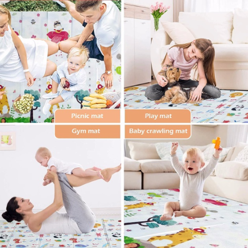 This Foldable & Reversible Extra Large Play Mat by PIRA is perfect for both indoor and outdoor use. At 200 x 180 x 1 cm, the soft and dense mat provides plenty of comfortable space for tummy time, crawling, playing, or keeping messes off your floor. Thanks to its zip close storage bag with carrying handles, this play mat may also be used for picnic outings and playtime on the go. Older children and grown ups can use it too, as a yoga or exercise mat. This 100% safe 100% safe XPE Foam play mat is BPA free, PVC free and formaldehyde free. The foam play mat is waterproof and easy to clean with a damp cloth.