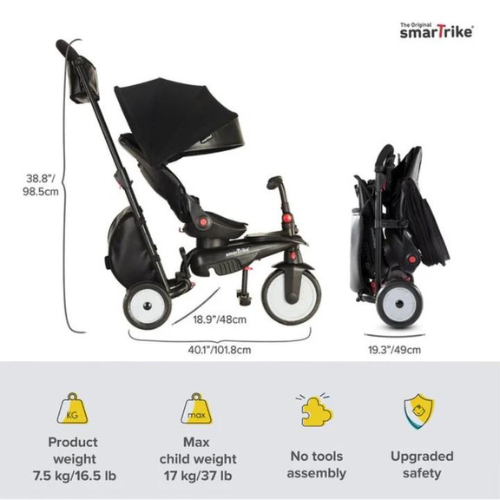 SmarTrike 7 Urban Folding Baby Tricycle 6m+ – Black